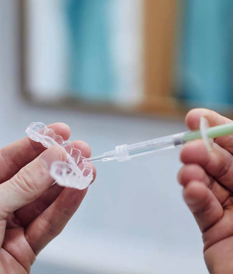 Impressions of your teeth are taken to create custom trays that fit securely and comfortably. These trays ensure even whitening and minimize contact with the gums. Your dentist will select a bleaching agent strength to match your treatment needs and goals. Stronger gels may produce faster whitening for some patients, but can increase sensitivity, which we carefully manage.