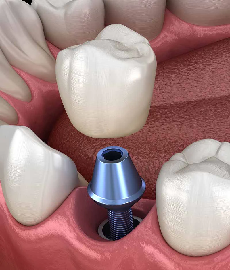 Dental implants are small titanium posts placed in the jawbone to replace missing tooth roots. Over time, the implant integrates with the bone, creating a secure base that can support a dental crown, bridge, or denture. Implant treatment is planned based on a comprehensive assessment, and not all patients are suitable candidates.